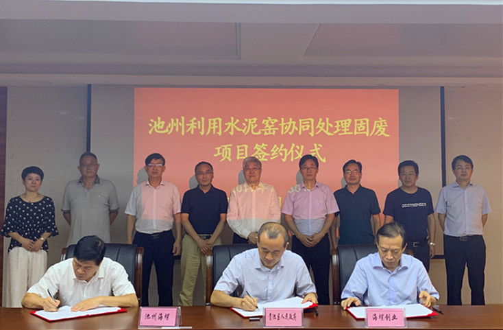 2019年7月30日,海螺創(chuàng )業(yè)與池州市貴池區人民政府成功簽署《池州利用水泥窯協(xié)同處理固廢項目合作協(xié)議》,項目規模為年處理固廢能力10萬(wàn)噸。