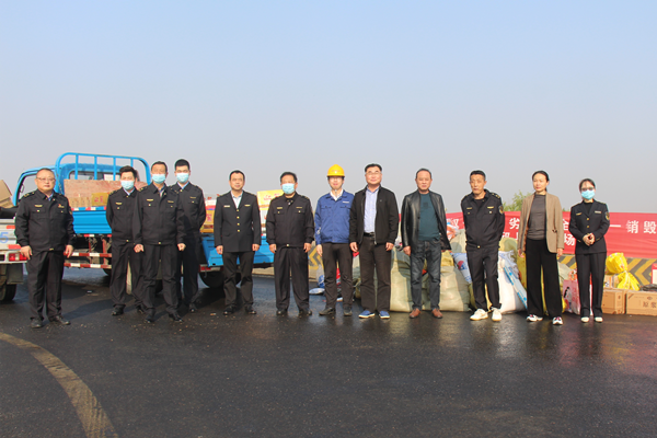 霍邱海創(chuàng )配合縣市場(chǎng)監督局開(kāi)展秋季假冒偽劣產(chǎn)品集中銷(xiāo)毀