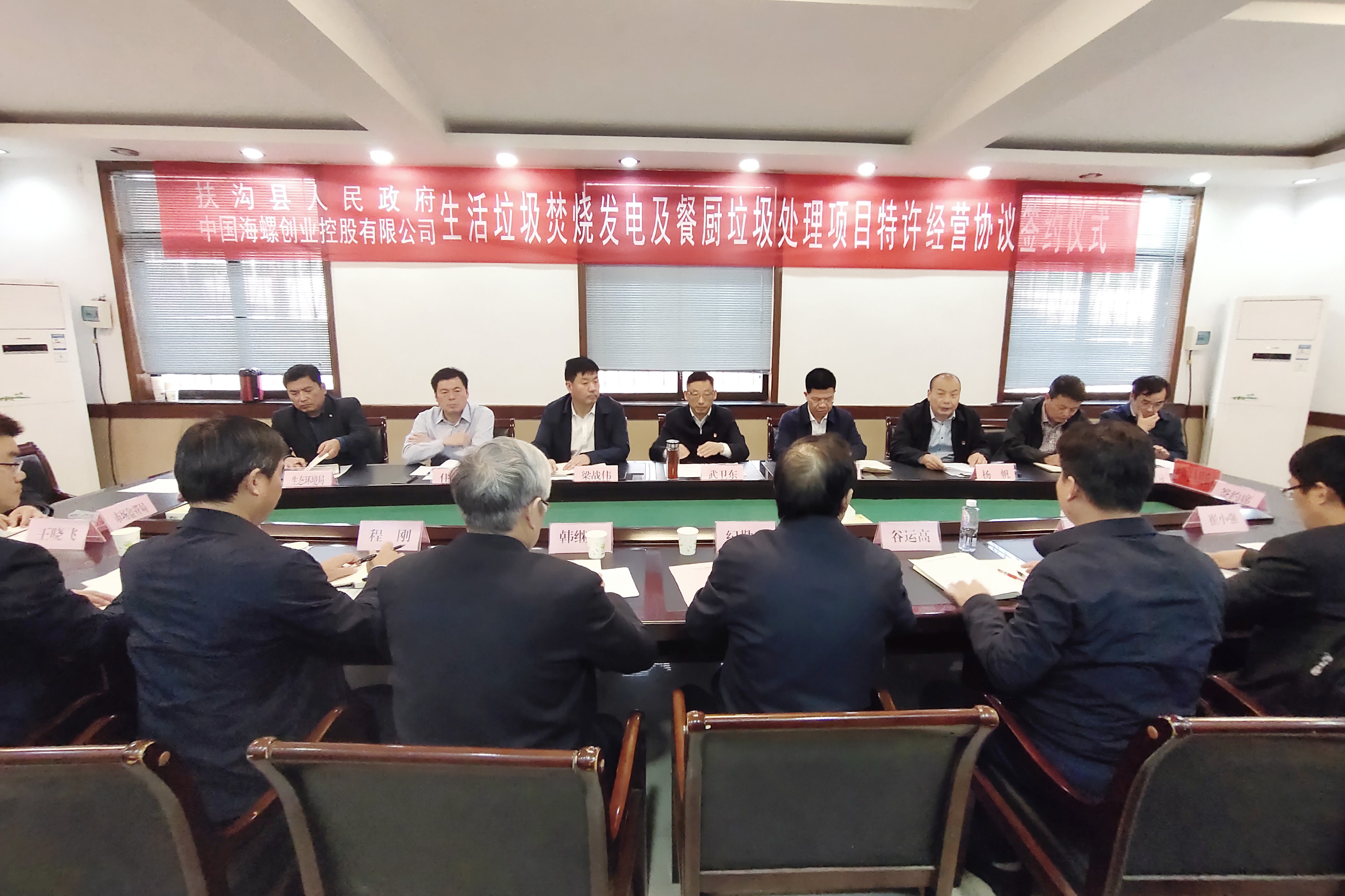 扶溝縣委常委宣傳部部長(cháng)武衛東、縣城管局局長(cháng)梁戰偉、縣政府辦主任楊帆,以及縣發(fā)改委、住建局、生態(tài)環(huán)境局、自然資源局、市場(chǎng)監督局、供電公司、大李莊鄉等有關(guān)部門(mén)主要負責人;海螺創(chuàng )業(yè)總經(jīng)理助理韓繼武、工程部副部長(cháng)程剛,海螺設計院總工汪克春、泗水海創(chuàng )總經(jīng)理谷運高等出席并見(jiàn)證簽約儀式。