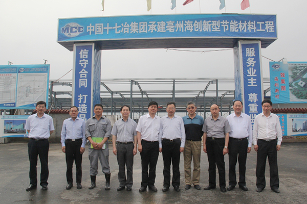 ? ? 在公司領(lǐng)導的帶領(lǐng)下,陳副省長(cháng)一行首先來(lái)到項目現場(chǎng)宣傳展板前,李總向陳副省長(cháng)詳細介紹了亳州海創(chuàng )新材料公司的基本情況、投資規模、產(chǎn)品特點(diǎn)、市場(chǎng)前景以及當前工程建設進(jìn)度等有關(guān)情況。他介紹說(shuō):亳州海創(chuàng )新材料公司是中國海螺創(chuàng )業(yè)控股有限公司下屬全資子公司,于2013年8月27日注冊成立,是一家主要致力于新型節能綠色建筑材料研發(fā)、制造、銷(xiāo)售、應用及建筑、安裝等業(yè)務(wù)的企業(yè)。一期纖維水泥板(CCA)項目引進(jìn)歐洲先進(jìn)成套設備及工藝技術(shù),項目工程于2013年10月23日正式開(kāi)工建設,預計今年9月建成投產(chǎn),陳副省長(cháng)聽(tīng)后非常高興。