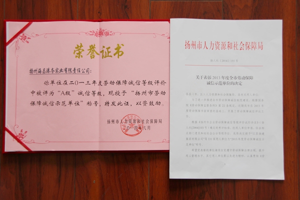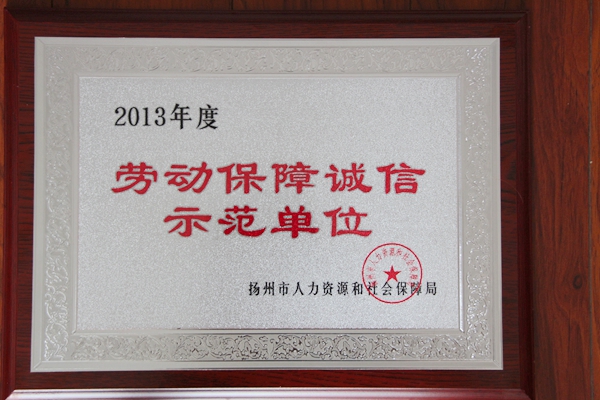 ? ? 近日,揚州海昌榮獲“2013年度勞動(dòng)保障誠信示范單位”榮譽(yù)稱(chēng)號,這是揚州海昌自2012年試運行以來(lái)首次獲此榮譽(yù)。