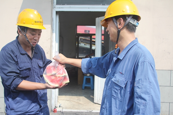 ? ? 一是定期組織開(kāi)展現場(chǎng)夏季送清涼活動(dòng)。統一購買(mǎi)了西瓜、人丹等防暑降溫用品發(fā)放至每位員工,給一線(xiàn)員工送上夏日的清涼。