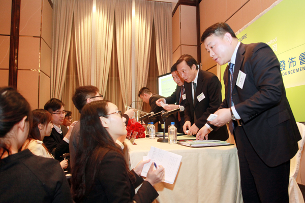 ? ? 海螺創(chuàng )業(yè)2014年度綜合業(yè)績(jì)一經(jīng)公布,便引起市場(chǎng)廣泛關(guān)注。為向投資者展示公司良好的經(jīng)營(yíng)業(yè)績(jì)以及各產(chǎn)業(yè)板塊的發(fā)展前景,加強與投資者的溝通交流,海螺創(chuàng )業(yè)于3月25日在香港四季酒店舉行了業(yè)績(jì)發(fā)布會(huì ),公司董事長(cháng)郭景彬、總經(jīng)理紀勤應、董事會(huì )秘書(shū)疏茂、財務(wù)部副部長(cháng)陳興強等出席了發(fā)布會(huì ),近百余名來(lái)自各大投資機構的投資者及分析員前來(lái)參會(huì )。