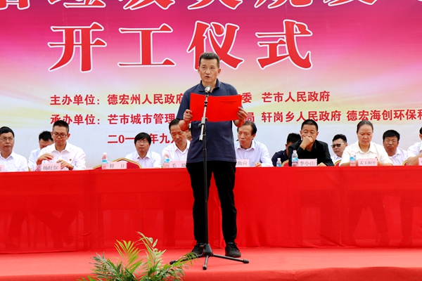 芒市副市長(cháng)孟玉相坐代表芒市人民政府致辭。她首先向公司開(kāi)工儀式的舉行致以熱烈的祝賀,表示市鎮府、各相關(guān)局委及鄉鎮將全力支持好、配合好項目建設,努力為項目建設提供優(yōu)質(zhì)服務(wù)、創(chuàng )造寬松環(huán)境,全程、全時(shí)、全力關(guān)注支持公司建設,確保項目早建成、早投產(chǎn)、早為芒市人居環(huán)境提升做貢獻。