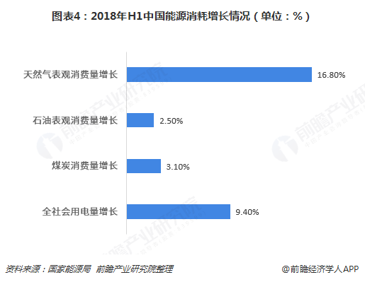 ? ? 2018年上半年,全社會(huì )用電量32291億千瓦時(shí),同比增長(cháng)9.4%,增速比2017年同期提高3.1個(gè)百分點(diǎn),創(chuàng )6年來(lái)新高。其中,煤炭消費穩中有升,全國煤炭消費同比增長(cháng)3.1%左右;石油消費保持平穩,表觀(guān)消費量同比增長(cháng)2.5%左右;天然氣消費大幅增長(cháng),表觀(guān)消費量同比增長(cháng)16.8%左右;電力消費快速增長(cháng)。