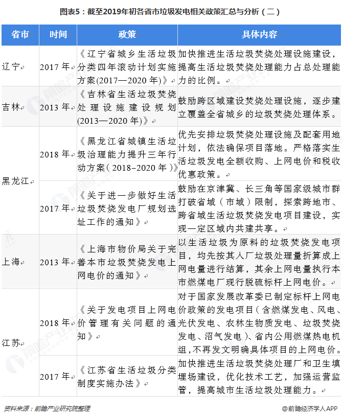 ? ? 2018年各省市垃圾發(fā)電政策匯總