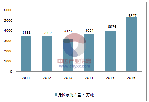? ? 1、2016年危廢產(chǎn)生量增速高達34%