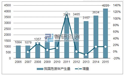 2006-2015年我國危廢產(chǎn)生量