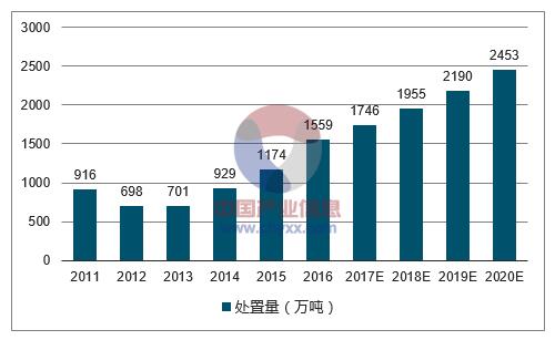 ? ? 以全國環(huán)境統計公報數據為基礎,假設未來(lái)幾年危廢產(chǎn)生量保持過(guò)去十年復合增長(cháng)率12%的增速,保守估計處置比例為35%,假設單位處置成本為2500元/噸,則預計2020年危廢處置市場(chǎng)為613億元,2017-2020處置市場(chǎng)空間總計2086億元??紤]到還有大量的危廢沒(méi)有進(jìn)入國家統計口徑,若未來(lái)幾年這一部分的危廢產(chǎn)生量逐漸釋放,市場(chǎng)空間還將提升2-3倍。