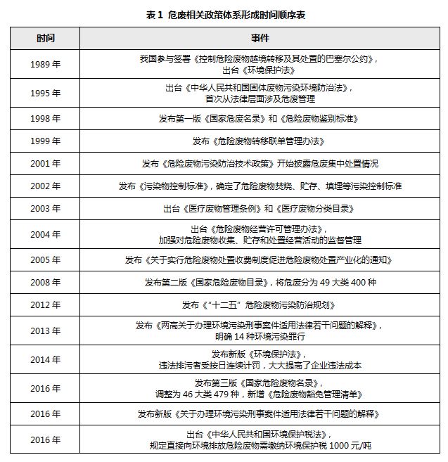 ? ? 至2017年,危險廢物治理法規體系日趨完善。體系形成的最大標志之一是危廢監管力度加大。2017年5月,環(huán)保部發(fā)布《“十三五”全國危險廢物規范化管理督查考核工作方案》,提出建立分級負責考核機制,以省(區、市)為主組織考核,國家對全國的規范化管理情況進(jìn)行抽查。在落實(shí)主體責任的前提下,進(jìn)一步加強危廢監管。