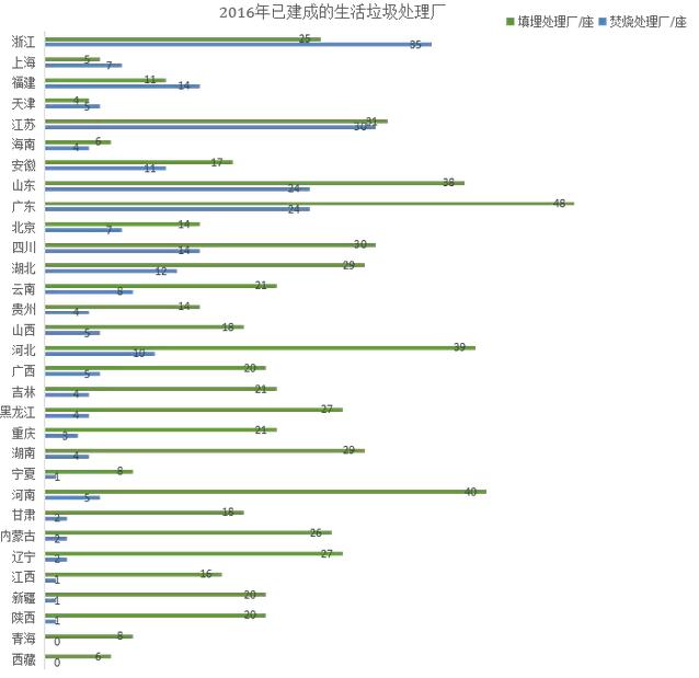 ? ? 根據中國統計局2016年的數據顯示,我國已建成的生活垃圾衛生填埋無(wú)害化處理廠(chǎng)657座,焚燒無(wú)害化處理廠(chǎng)249座,占比分別為73.3%和27.8%。