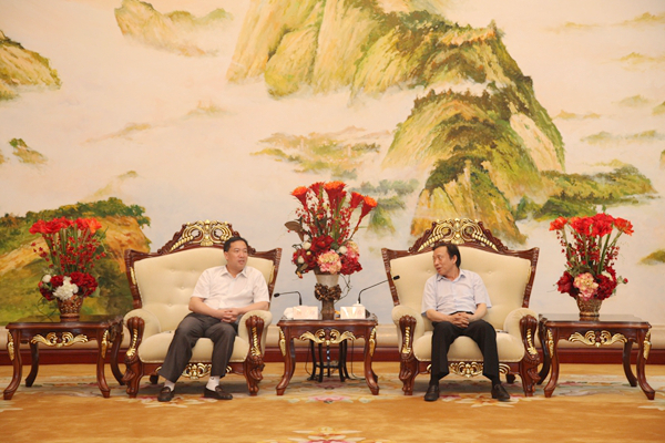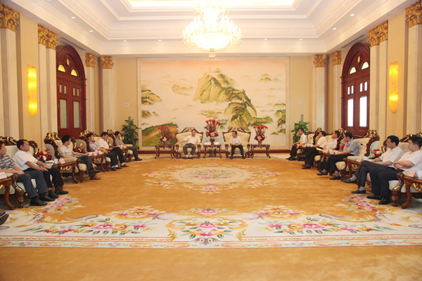 ? ? 簽字儀式前,紀勤應總經(jīng)理在海螺國際會(huì )議中心海螺廳會(huì )見(jiàn)楊維縣長(cháng)一行。