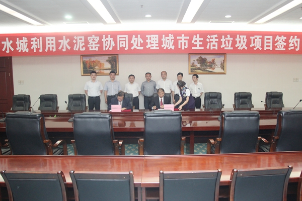 ? ? 2014年9月4日下午,水城經(jīng)濟開(kāi)發(fā)區、海螺創(chuàng )業(yè)在安徽省蕪湖海螺國際會(huì )議正式簽署了《關(guān)于貴州水城利用水泥窯協(xié)同處理城市生活垃圾項目合作協(xié)議》,水城經(jīng)濟開(kāi)發(fā)區副主任陸秀云、經(jīng)發(fā)局主任李徽;海螺創(chuàng )業(yè)總經(jīng)理紀勤應、副總經(jīng)理李大明;水城海螺副總經(jīng)理潮龍喜等參加了簽約儀式。