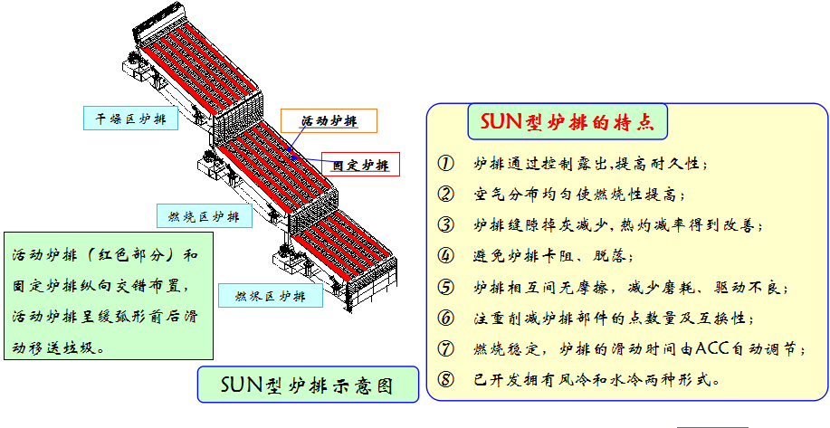 2、SUN型爐排爐——模塊化、維護低、熱灼減率≤3%